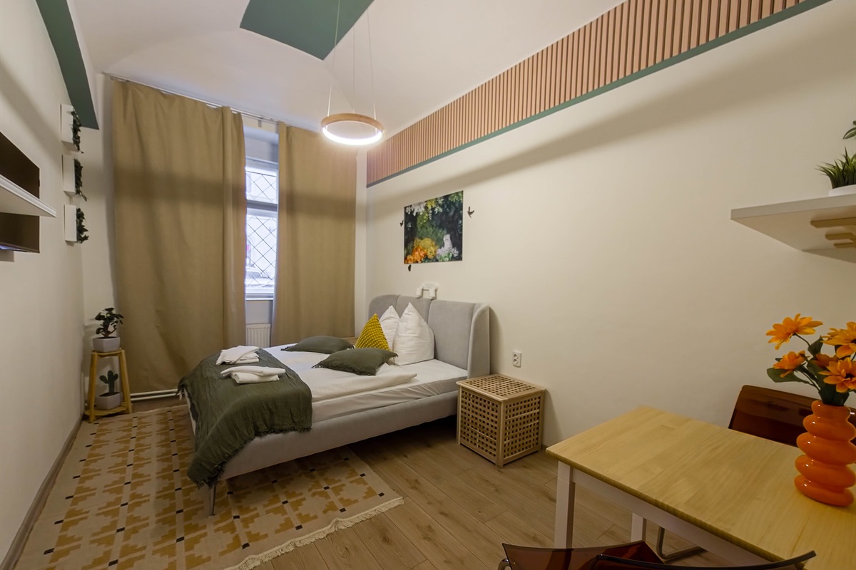 Yellow comfortable studio apartment for 3 people is located in Zizkov area, historical place of Prague 3, at the first floor of nice building on Cimburkova street.